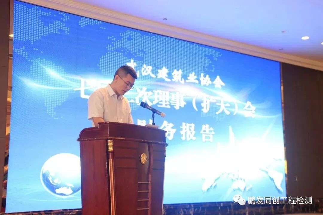 2018年8月28日上午,湖北鹏发同创工程技术有限公司作为武汉建筑业协会理事单位,参加了武汉建筑业协会七届二次理事(扩大)会在武汉欧亚会展国际酒店顺利召开。大会的主要任务是总结换届一年来理事会工作,研究、确定协会下一步发展方向和工作重点。武汉市建管办主任周才志、武汉市民政局社团管理处副处长夏涛、武汉市建筑行业工会联合会副主席许静红等领导莅会指导。协会理事、部分会员企业代表、兄弟协会以及《中华建设》等媒体记者共378人参加会议。会议由协会副会长兼秘书长李淼磊主持。会议还邀请了中科网络科技有限公司特聘教授陈飞博士作《大数据及人工智能的发展与建筑业》专题报告。