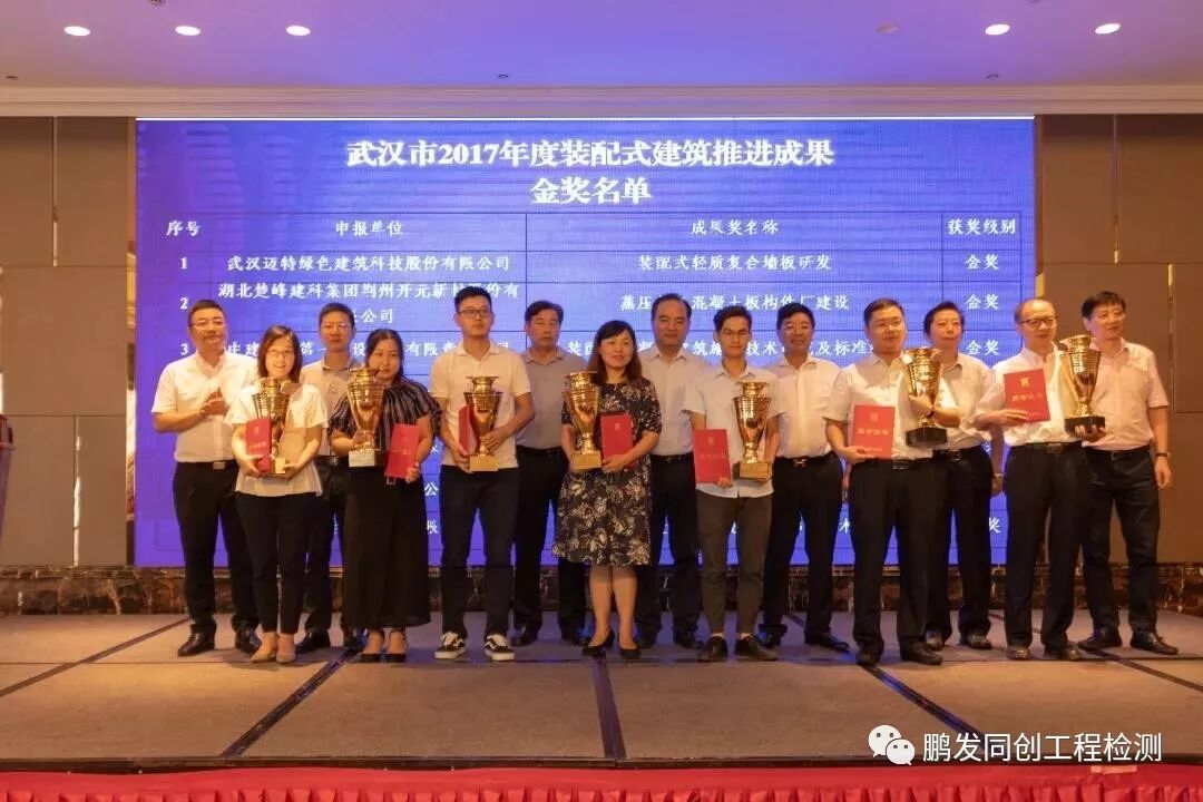 会上听取了协会参与建设“易建采”——建筑施工供应链全球移动采购平台情况汇报。颁发了武汉市2017年度装配式建筑推进成果奖金奖、第十九届建设工程黄鹤奖金奖和银奖(代表)。